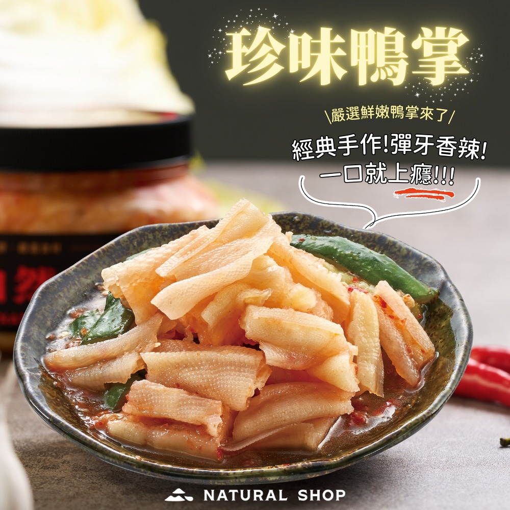 產品成分 : 鴨掌、三櫻椒、鹽、糖、辣椒、蒜頭、釀造醋、香油(沙拉油、芝麻油)