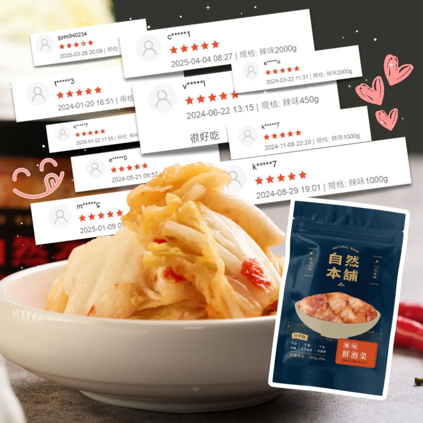 泡菜外觀與辣度、酸度會因季節與批次略有不同,這正是自然發酵的獨特之處。