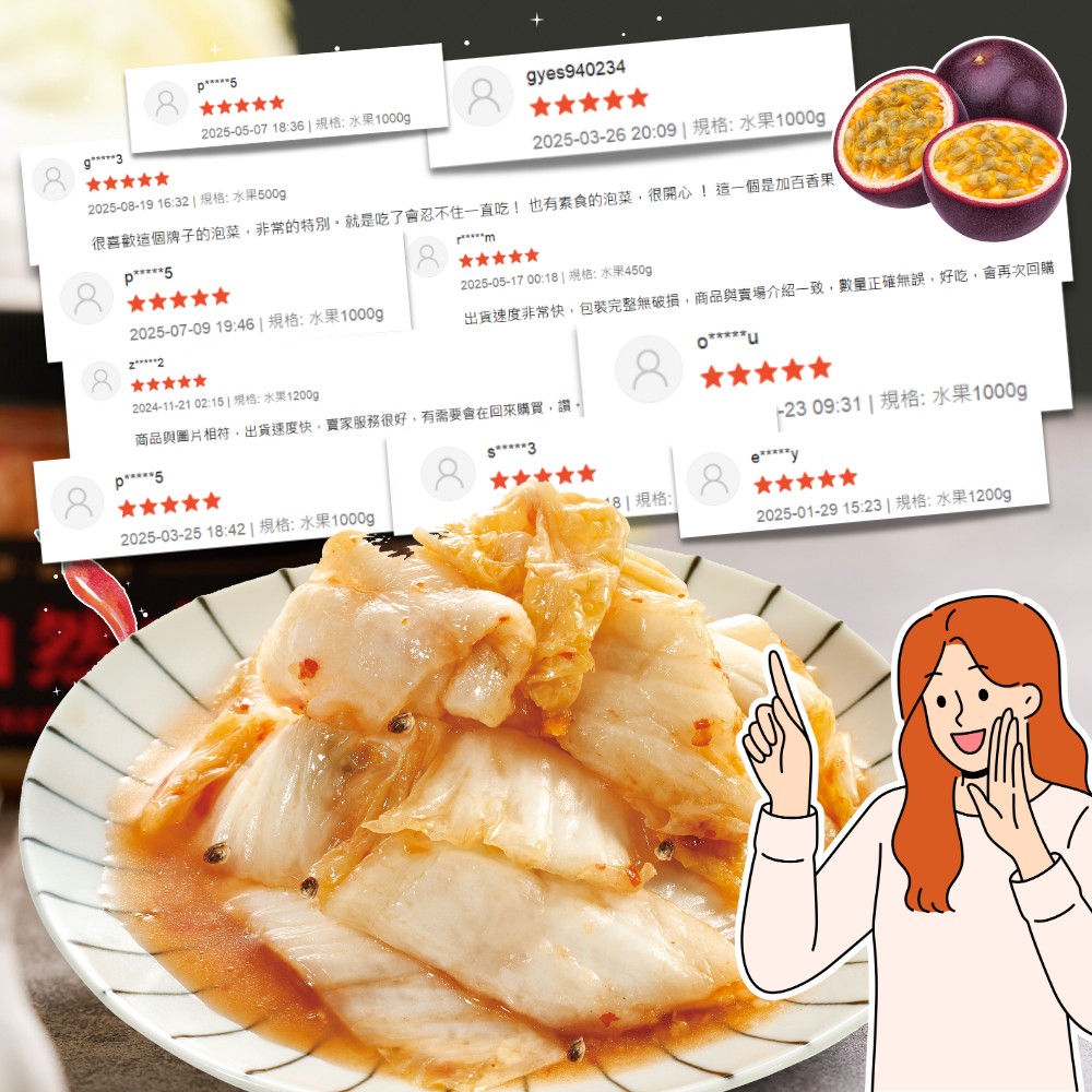 產品成分 : 大白菜、辣椒、鹽、蘋果、糖、百香果、檸檬